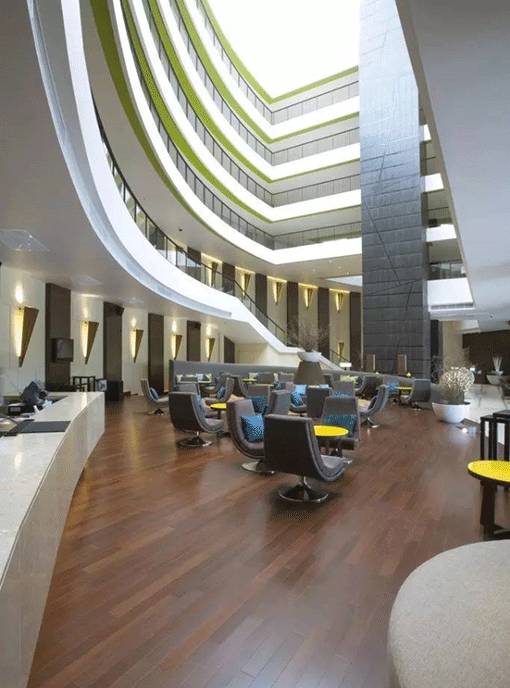 大廳空間要求寬敞明亮、色彩怡人,應保持充足的采光照明,并盡可能利用自然光,在大廳內(nèi)引進綠色植物,并通過通透的外墻借室外園林景色,營造出讓病人可充分放松和消除緊張的感覺,指示標識應醒目,線路清晰易找,導醫(yī)、問詢安排在接近入口的合適位置,做到既不影響交通又使問詢方便。大廳應保持良好的空氣質量,對于全空調的大廳,裝修不得影響空調的氣流組織,墻、頂造型均應與空調消防等專業(yè)密切配合。