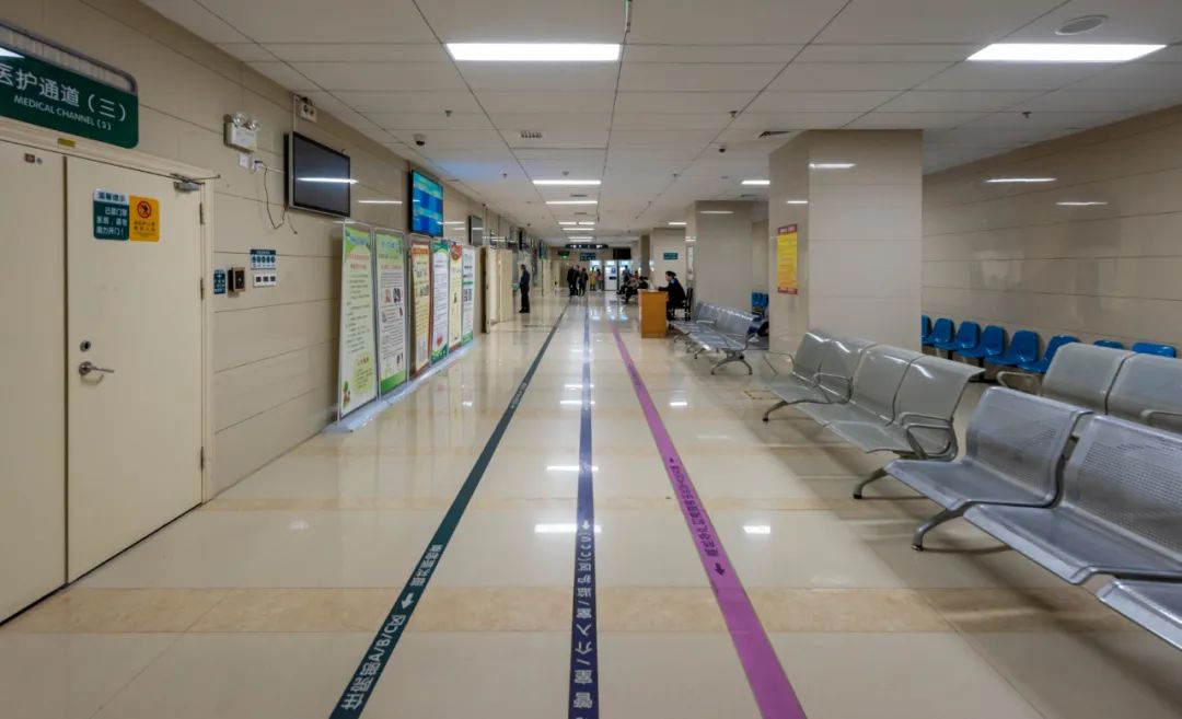 室內(nèi)的水平通道、垂直通道要從功能的分布、各醫(yī)療流程進(jìn)行梳理整合,選擇各種運(yùn)輸梯臺數(shù)量與形式,從而提高醫(yī)院的整體運(yùn)營效率。圖為上海市第六人民醫(yī)院門診醫(yī)技樓垂直電梯廳。